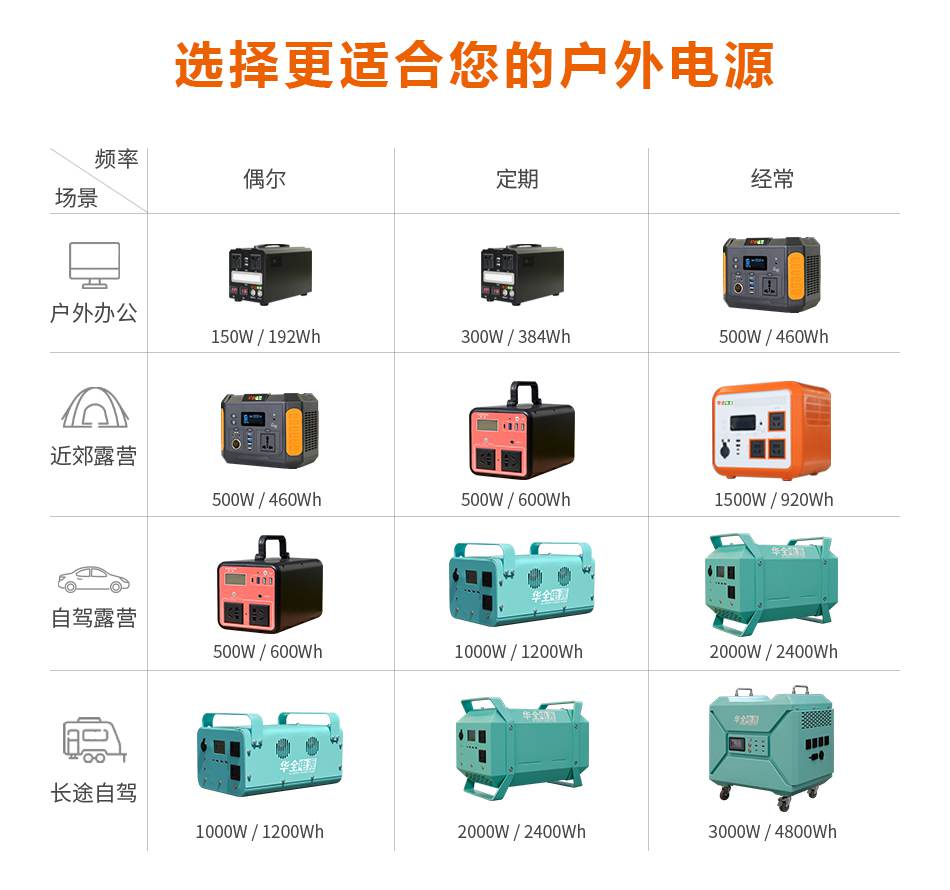 除了以上兩款,下面還有其他不同規格的戶外電源,大家可以根據需求選擇: