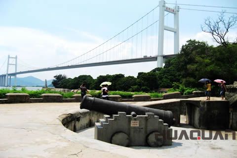 關(guān)于虎門,還有一個美麗的傳說呢。傳說很久以前,南海龍王敖欽為了解救被蓮花山虎精掠走的小女兒亞娘,派出魚、蝦二將用神棍將老虎精打死。沒想到老虎是母的,且有孕在身,臨死之時竟然生下了一個老虎死胎。南海龍王不放心,怕它們死而復(fù)活,于是用一把金鎖將虎精與死胎鎖在珠江中。后來,大小二虎變成了橫臥江中的兩座山島,恰似兩個衛(wèi)士在守門,因而得名——虎門。